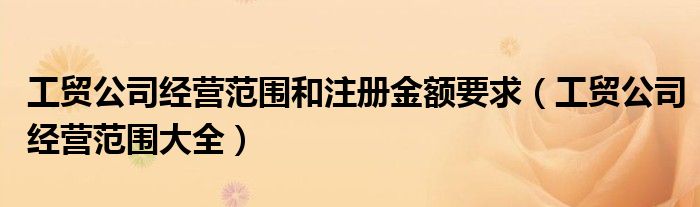 大家好,小联来为大家解答以上的问题。工贸公司经营范围和注册金额要求,工贸公司经营范围大全这个很多人还不知道,现在让我们一起来看看吧!