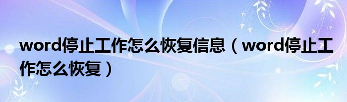 关于word停止工作怎么恢复信息,word停止工作怎么恢复这个很多人还不知道,今天菲菲来为大家解答以上的问题,现在让我们一起来看看吧!