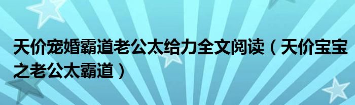天价宠婚霸道老公太给力全文阅读(天价宝宝之老公太霸道)