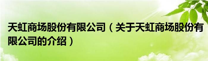 1、天虹商场是一家中外合资经营的大型综合性商业企业。