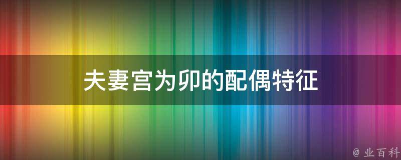 夫妻宫为卯的配偶特征是长相出众,身材较好,性格脾气也很温柔。夫妻宫包含许多另一半的特征,例如:婚姻宫为午,另一半敬老爱幼、善良;婚姻宫为酉,他的另一半在事业上发展的很好,为人很圆滑;婚姻宫为子的人,配偶有智慧,特别聪明,性格也很好。