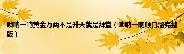 唢呐一响黄金万两不是升天就是拜堂(唢呐一响顺口溜完整版)