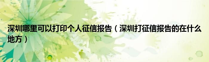 深圳哪里可以打印个人征信报告(深圳打征信报告的在什么地方)