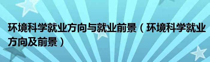环境科学就业方向与就业前景(环境科学就业方向及前景)