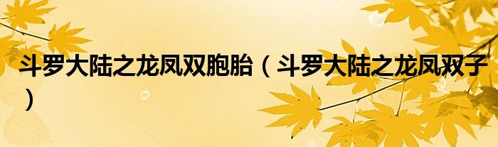 斗罗大陆之龙凤双胞胎(斗罗大陆之龙凤双子)