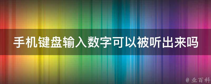 手机键盘输入数字可以被听出来吗
