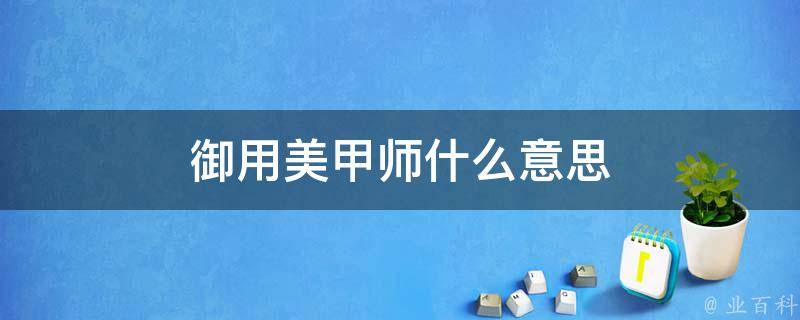 御用美甲师是指经常用的美甲师。御用,古代封建社会特指专为皇家使用的成为御用。美甲师是时尚领域不可或缺的一部分,专业的美甲师精通美甲护理、美甲装饰等方面的技能,能够为顾客提供专业的美甲服务。