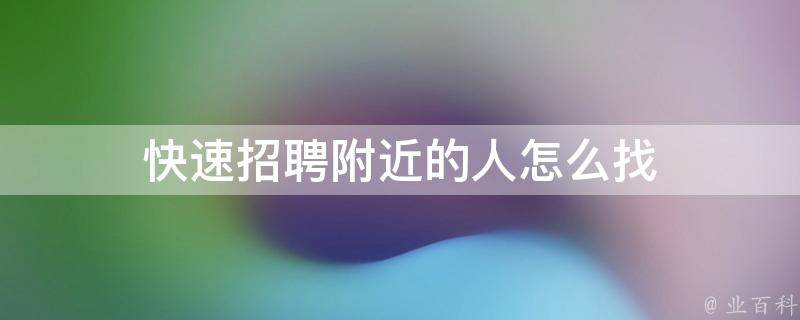 1、可以通过网络搜索引擎查找附近的招聘信息,以便可以更轻松地查看到最新的就业机会。此外,也可以关注社交媒体上的附近招聘信息,以保持最新的就业机会。