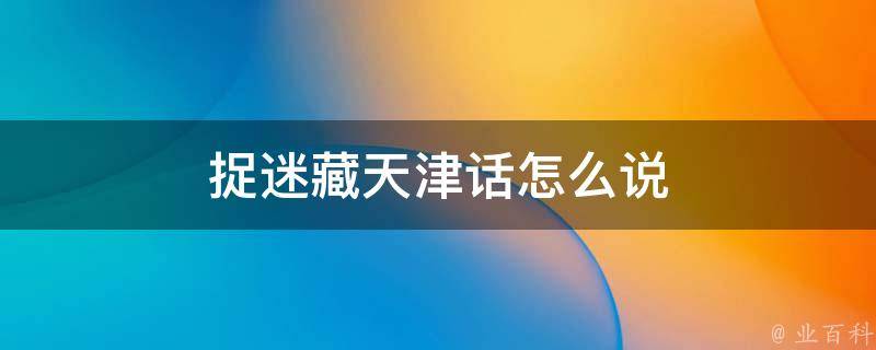 捉迷藏天津话是藏蒙个儿。根据查询天津本地宝显示,藏蒙个儿是从捉迷藏演变来的,引申为扑朔迷离,表达为这个人不老实。天津话属冀鲁官话保唐片天津小片,与中原官话信蚌片亦有关联,特指以天津老城为中心的一个尖朝南,底朝北的三角形方言岛内人们所说的方言,即天津话。
