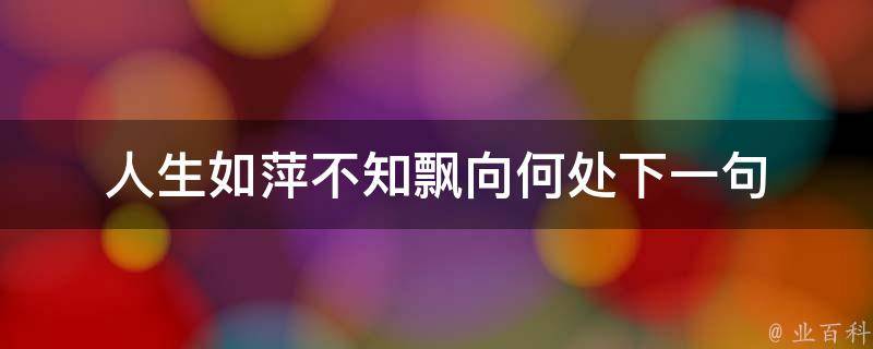 人生如萍不知飘向何处下一句是聚散两茫茫。这句话的意思是,人生就像浮萍一样,不知道会飘向何处,也难以预测何时会聚拢或何时会分离,充满了不确定性。这种不确定性也反映了人生的无常和不可预测性。同时,也表达了人生中聚散离合的无常和迷茫,让人感到一种无法掌控和无奈的情绪。