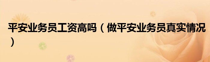 平安业务员工资高吗(做平安业务员真实情况)