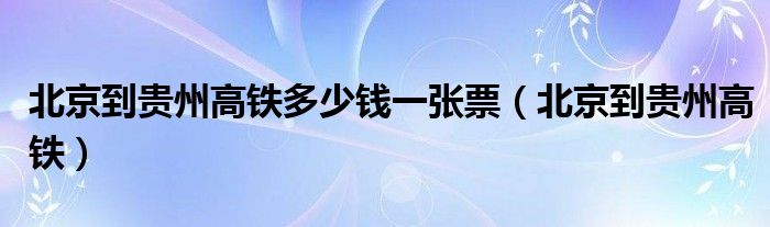 北京到贵州高铁多少钱一张票(北京到贵州高铁)