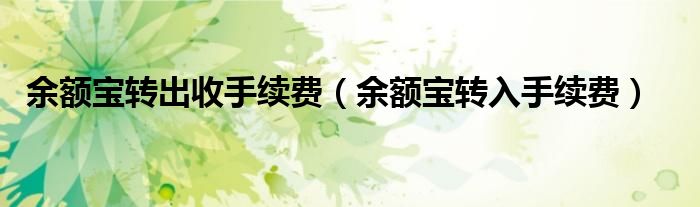 余额宝转出收手续费(余额宝转入手续费)