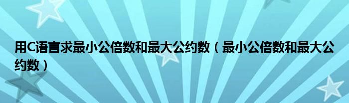 大家好,小联来为大家解答以上的问题。用C语言求最小公倍数和最大公约数,最小公倍数和最大公约数这个很多人还不知道,现在让我们一起来看看吧!