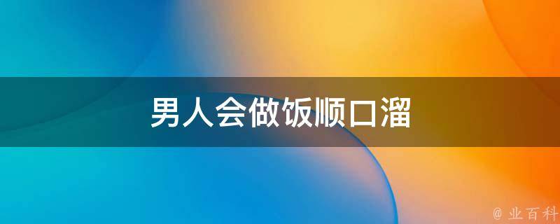 男人会做饭顺口溜