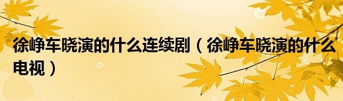 徐峥车晓演的什么连续剧(徐峥车晓演的什么电视)