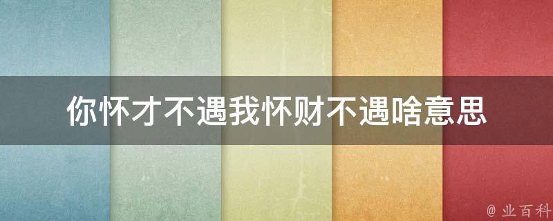 最佳答案你怀才不遇我怀财不遇意思是:对方有能力但无法得到应有的认可或发挥,这种说法是对对方的工作能力或价值的一种评价,而当说我怀财不遇时,它指的是拥有大量财富却无法得到相应回报或享受,意味着认为自己遭遇了经济上的困境或不如预期的商业结果。