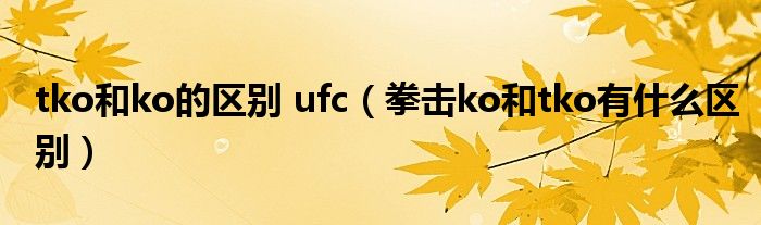 tko和ko的区别 ufc(拳击ko和tko有什么区别)