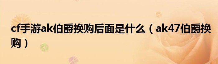 cf手游ak伯爵换购后面是什么(ak47伯爵换购)