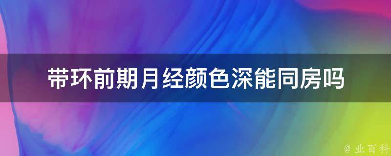 带环前期月经颜色深不能同房。带环前期月经颜色深可能是由于环对子宫内膜的刺激所导致,还可能是由于环不合适所引起。此时同房可能会引起感染,从而引发妇科疾病。此外,带环前后的两周内也尽量不要同房。