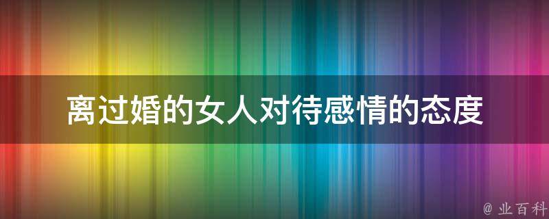 最佳答案离过婚的女人对于婚姻和爱情是抱着慎之又慎的态度,宁可错过,也不要再去受伤,不是她们胆怯了,而是她们终于明白,男人条件再好,也不如男人对自己好这一点。因此,很多离婚后的女人会变得比头婚更为慎重和谨慎。她们不会再轻易被爱情冲昏了头脑,也不会再轻易妥协委身于婚姻。