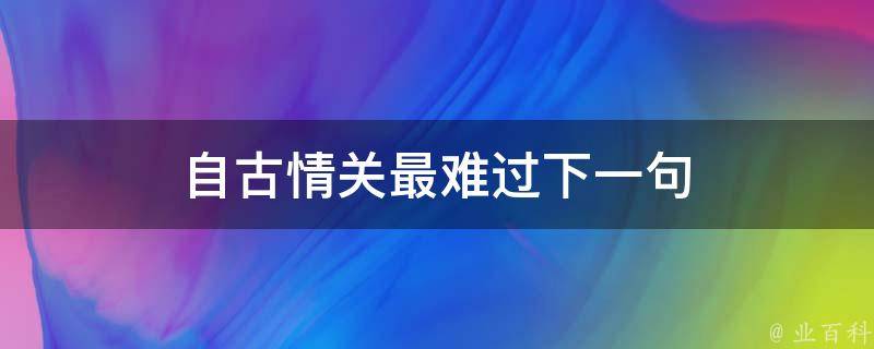 最佳答案自古情关最难过下一句是为何我是痴情种。意思是自古以来爱情这关卡最难渡过,偏偏我是个很痴情的人。痴情是指一种对他人的强烈依恋,常常不顾一切,就算全身心献出感情,即使无法得到回报依然不改初衷的情感态度。
