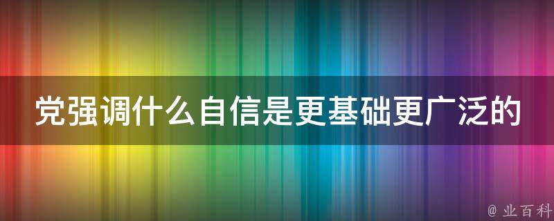 最佳答案党强调文化自信是更基础更广泛的。文化自信,是更基础、更广泛、更深厚的自信。在5000多年文明发展中孕育的中华优秀传统文化,在党和人民伟大斗争中孕育的革命文化和社会主义先进文化,积淀着中华民族最深层的精神追求,代表着中华民族独特的精神标识。