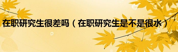在职研究生很差吗(在职研究生是不是很水)