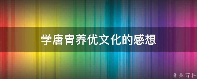 学唐胄养优文化的感想