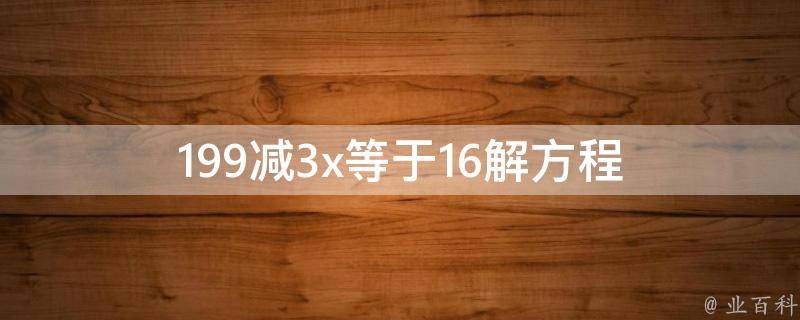 最佳答案199减3x等于16解方程等于61。在这个方程里,我们知道x是未知数。根据题目,可以建立方程:199-3x=16,计算出x的值为61。含有未知数的等式叫方程,也可以说是含有未知数的等式是方程。求方程全部的解或判断方程无解的过程叫做解方程。