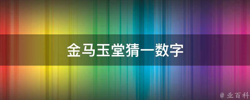 最佳答案金马玉堂猜一数字是27。因为金马玉堂字的笔画分别是8、3、5、11,加起来刚好27,所以,金马玉堂猜一数字是27。在数字谐音中,2代表爱、两人世界;7代表请、亲、起、气。另外,0代表圆满、完美、无尽;1代表唯一、你、起点。