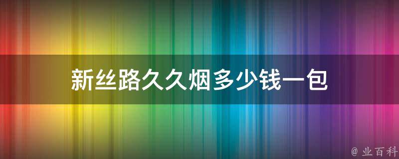最佳答案新丝路久久烟20元一包。新丝路久久香烟是一款细支烟,其烟支纤细,带有一股淡淡的香味,入喉不刺激,香烟的包装以白色为主,烟嘴为淡黄色,整体设计简洁大方,尽显高贵气质,没有任何黑色或其余颜色的版本。