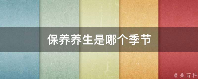 最佳答案保养养生是春季和秋季。春季是万物复苏的季节,是养生的最佳时机。中医认为,春天进补,重在养肝。秋季天气渐凉,衣者应根据气温增减;秋燥季节,注意环境湿润;饮食要防燥护阴。秋季是养肺的季节,重点养护以此为主。