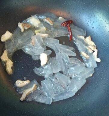 4、油锅里炒,因为肉丝和芦荟都熟的,焖一会就好了。