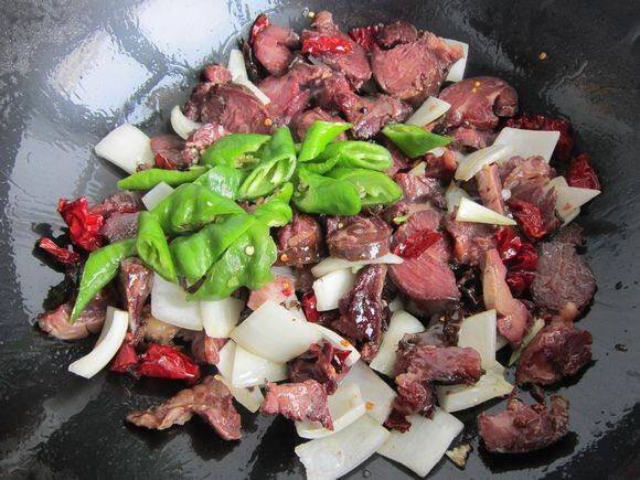 9、加辣椒块。