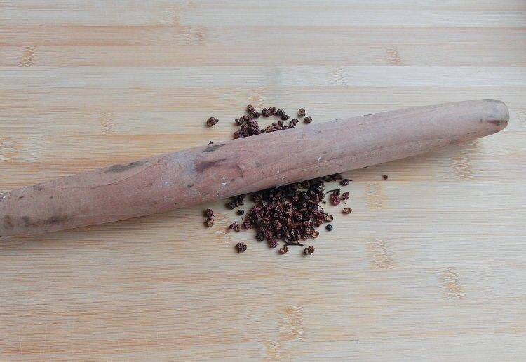 5、将10克花椒粒放入干锅中炒香(锅内不用放油)。