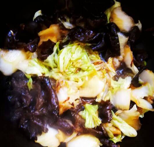 用料:黑木耳30克、大白菜300克、葱20克、姜20克、陈醋2勺、生抽1勺、盐适量。