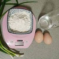 1、准备材料:鸡蛋2只、小葱1根、清水120克、面粉70克、盐2克。