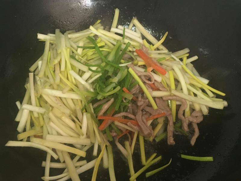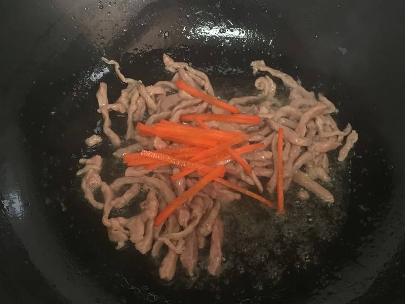 最佳答案用料:猪肉、胡萝卜、蒜黄、香菜、海蜇、生抽、料酒、淀粉、香油、花生油。做法:1、胡萝卜切丝,猪肉洗净切丝放入水淀粉抓匀,蒜黄、香菜切段,海蜇洗净,碗中加入生抽、料酒、淀粉调汁。2、锅中加入花生油。3、放入肉丝。4、炒出香味。5、放入胡萝卜丝煸炒。6、放入蒜黄,香菜炒匀。7、放入海蜇。...