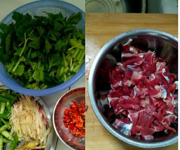 生姜1块、蒜瓣半头、料酒适量、泡椒适量、凉白开适量、花椒适量、郡肝4个、青尖椒适量、芹菜适量、嫩姜一块。