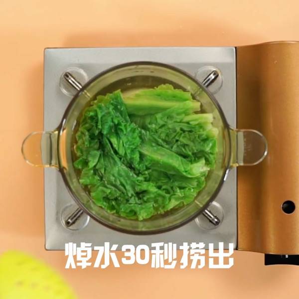 1、清水煮沸,放入生菜。