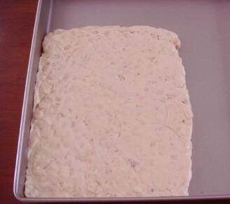 趁热倒入不粘方盘里,压实压平成型。