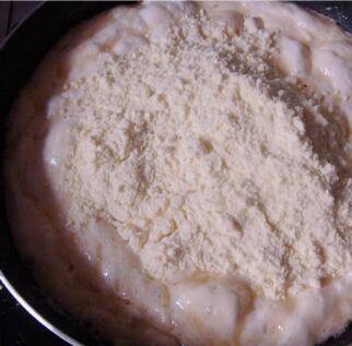 黄油放不粘锅里融化成液体。