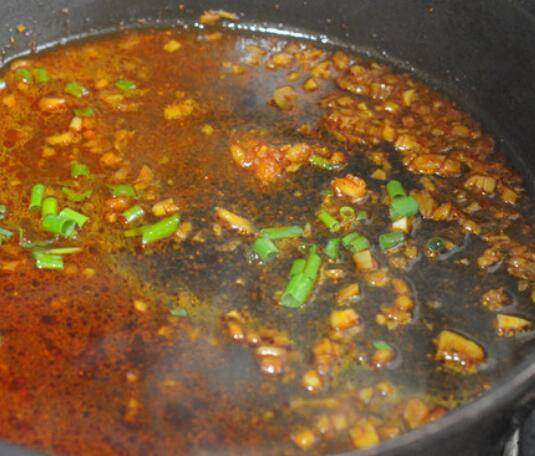 3.锅里加油,先将姜蒜末下锅煸炒出香味。