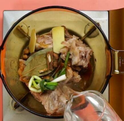 5、加入刚刚泡着的大料水,加生抽、料酒、盐中小火炖30分钟即可。