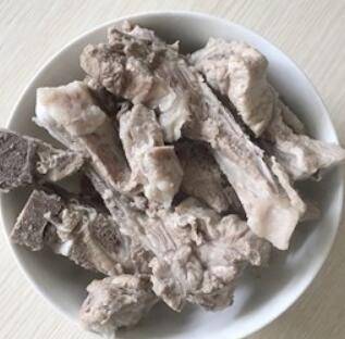 2、猪脊骨焯水三分钟洗净沥干备用。