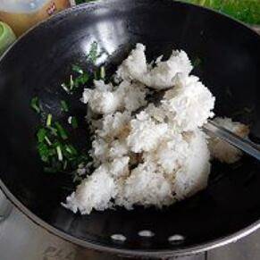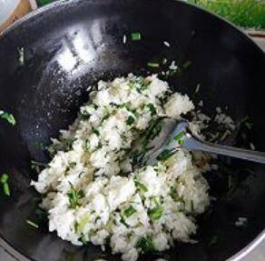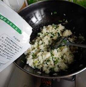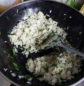 用料:韭菜80克、米饭1碗、盐4克、鸡精适量。