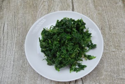 荠菜挤去水,切碎;