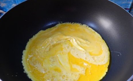 锅中入油,煎炒鸡蛋;