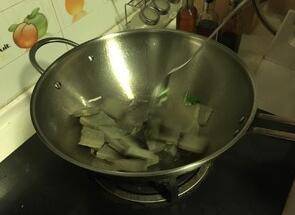 放入皮扎,翻炒均匀,约2分钟左右。